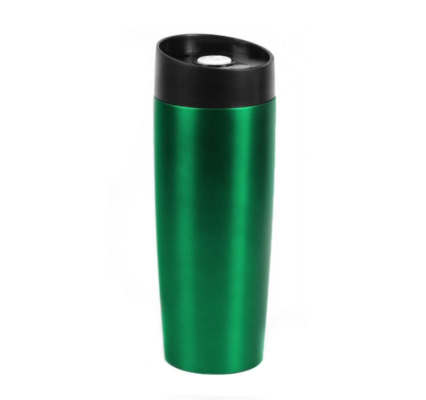 Вакуумна термокружка з нержавіючої сталі, з об`єм 400 мл. , вкрита матовою кольоровою емаллю, кришка-непроливайка з клапаном . Підтримує температуру до шести годин. Упакована в індивідуальну чорну коробку та поліетиленовий пакет.