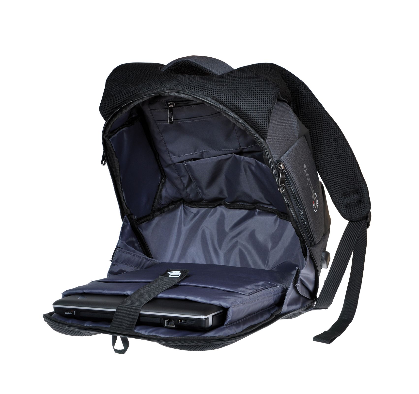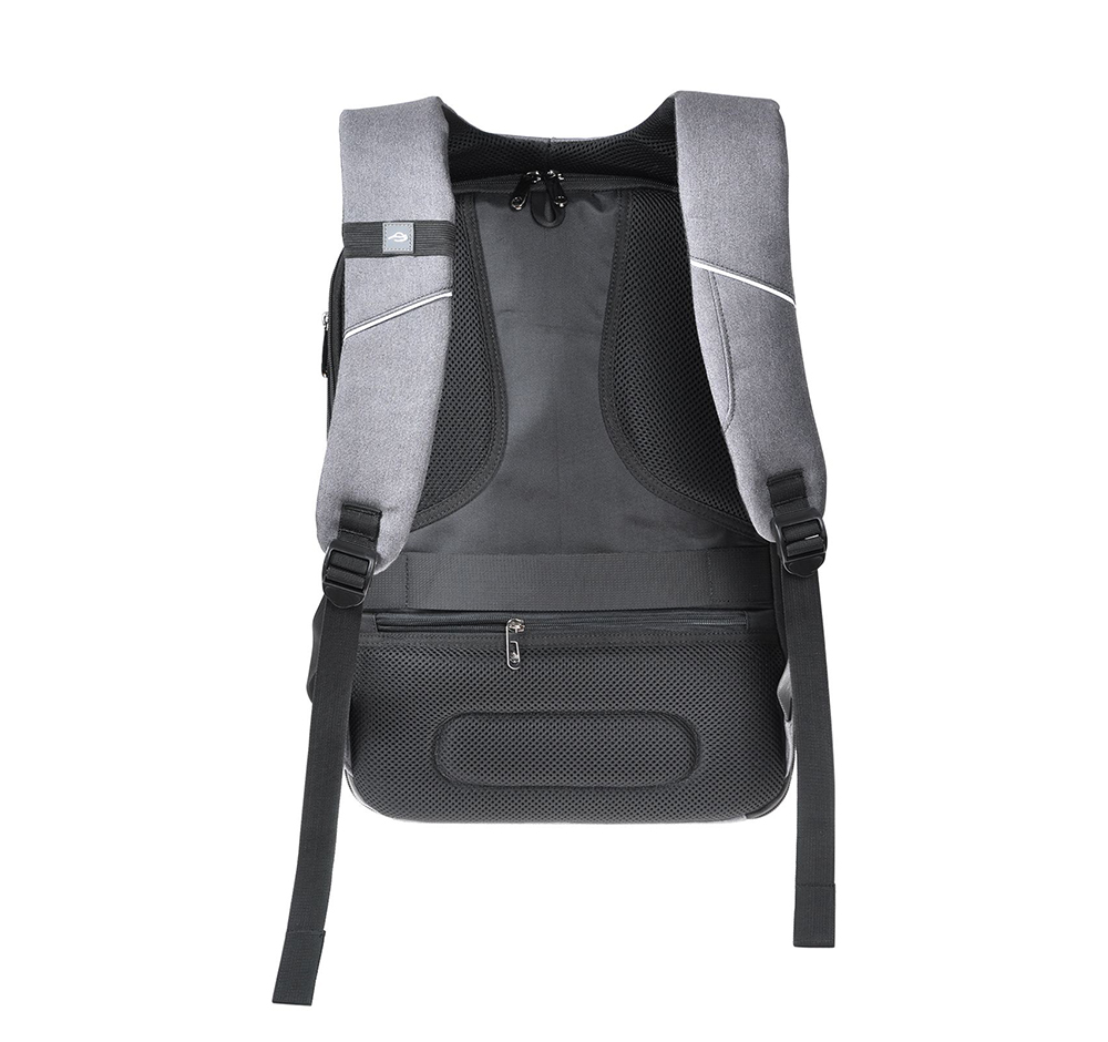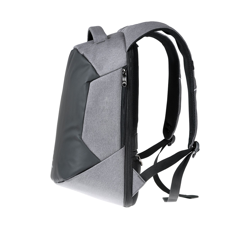 Рюкзак для ноутбука 15,6”. Має велике відділення, з фіксаторами та розділювачами для ноутбука та планшету; 3 додаткові кишені, кишеня для повербанку та 3 зовнішні кишені. Вбудований USB-порт для зарядки. М’яка спинка, лямки з пасивною системою вентиляції; пасок для фіксації на дорожні валізи.