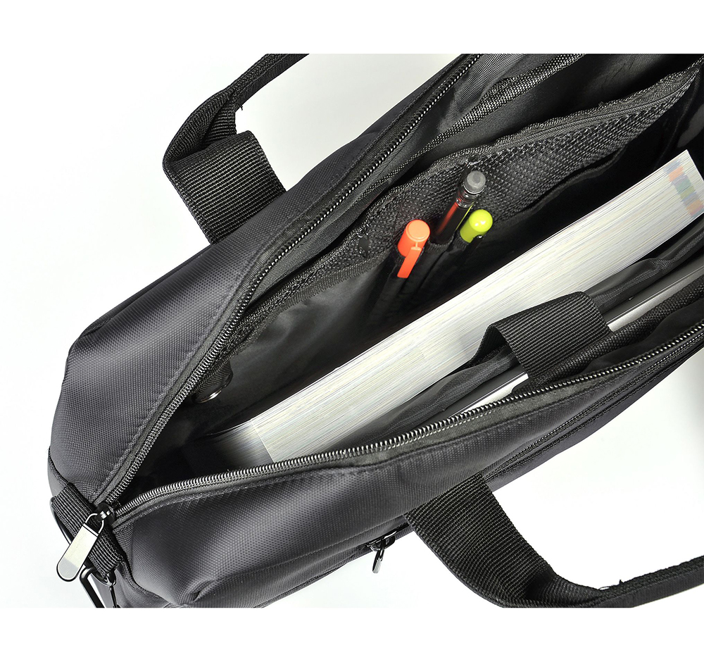 Сумка для ноутбука 15″. Основне відділення, відділення для ноутбука з м’яким ущільнювачем, одна внутрішня кишеня на блискавці та дві зовнішні кишені на блискавці